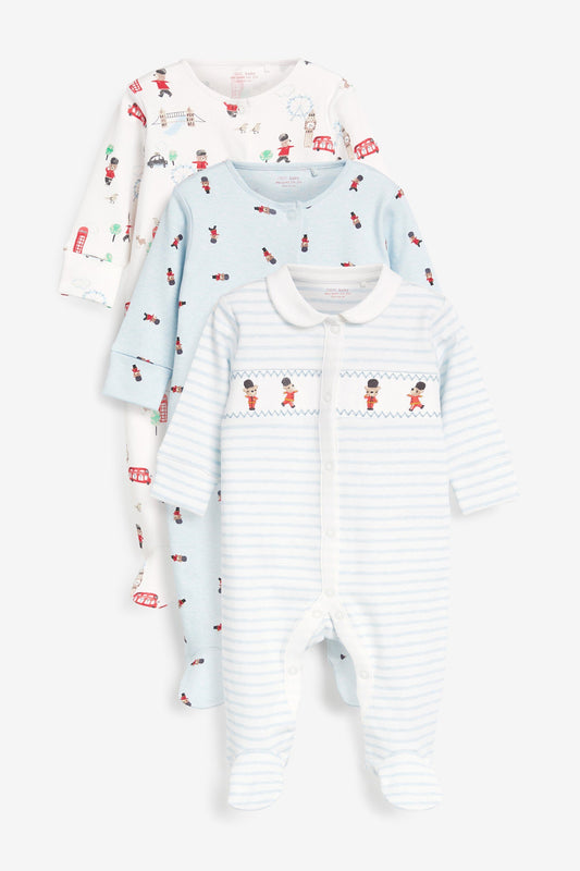 3 Pack Embroidered Sleepsuits (0-2yrs)